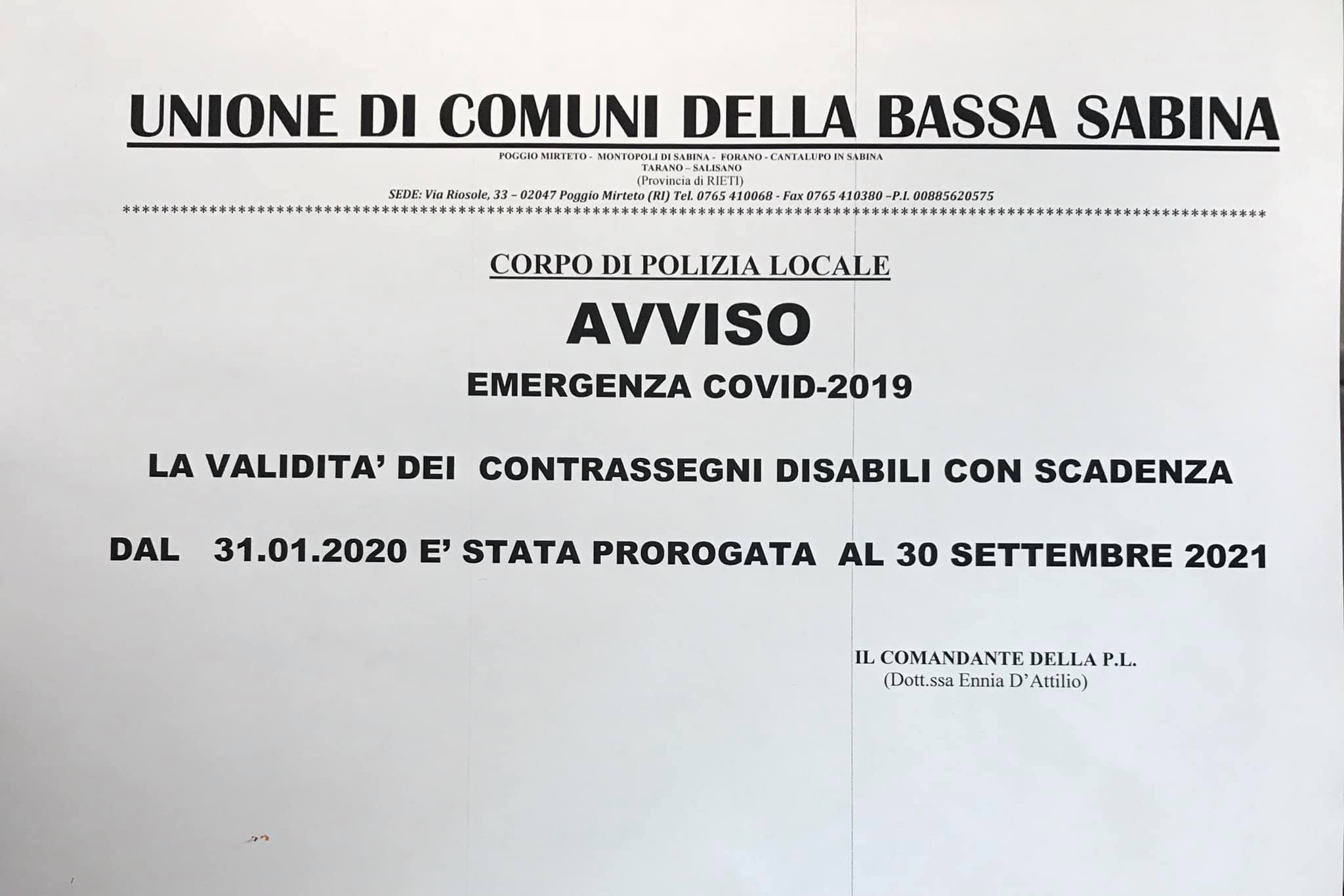 AVVISO VALIDITA’ CONTRASSEGNI DISABILI